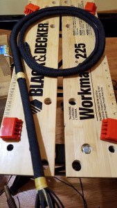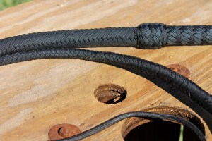 I finished a 6 foot bullwhip today that I’m pretty proud of. It’s one I made for myself with an all black overlay, 2 bellies and a test of a new technique for plaiting the overlay. I wanted to incorporate an English eye for the fall hitch instead of the traditional fall hitch. I had seen this type of hitch being used by other whip makers and thought it was a good way to attach the fall. It makes it a lot easier to change out the fall when it wears out or if you just wanted to try a different length.